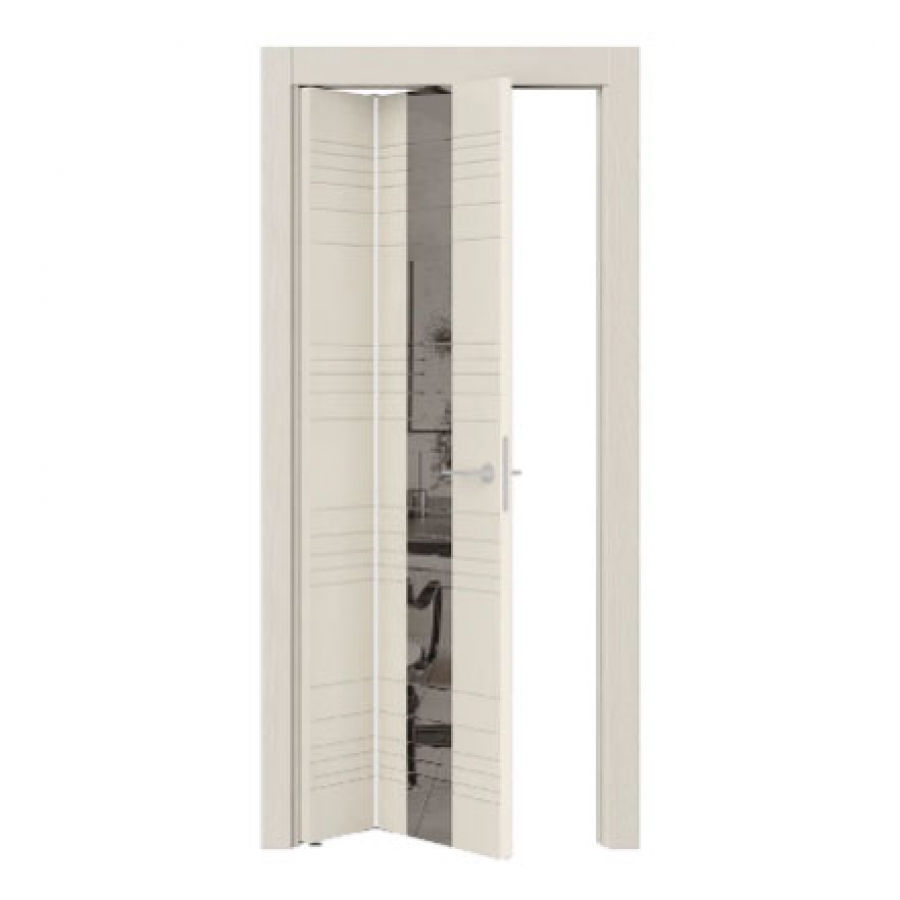 Такая конструкция сочетает традиционный внешний вид двери с функциональностью, обеспечивая экономию жилого пространства до 60%. Полотно складывается внутрь проема, что позволяет максимально оптимизировать использование площади и упростить расстановку мебели.
